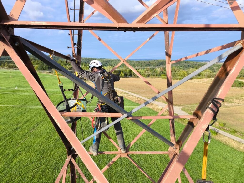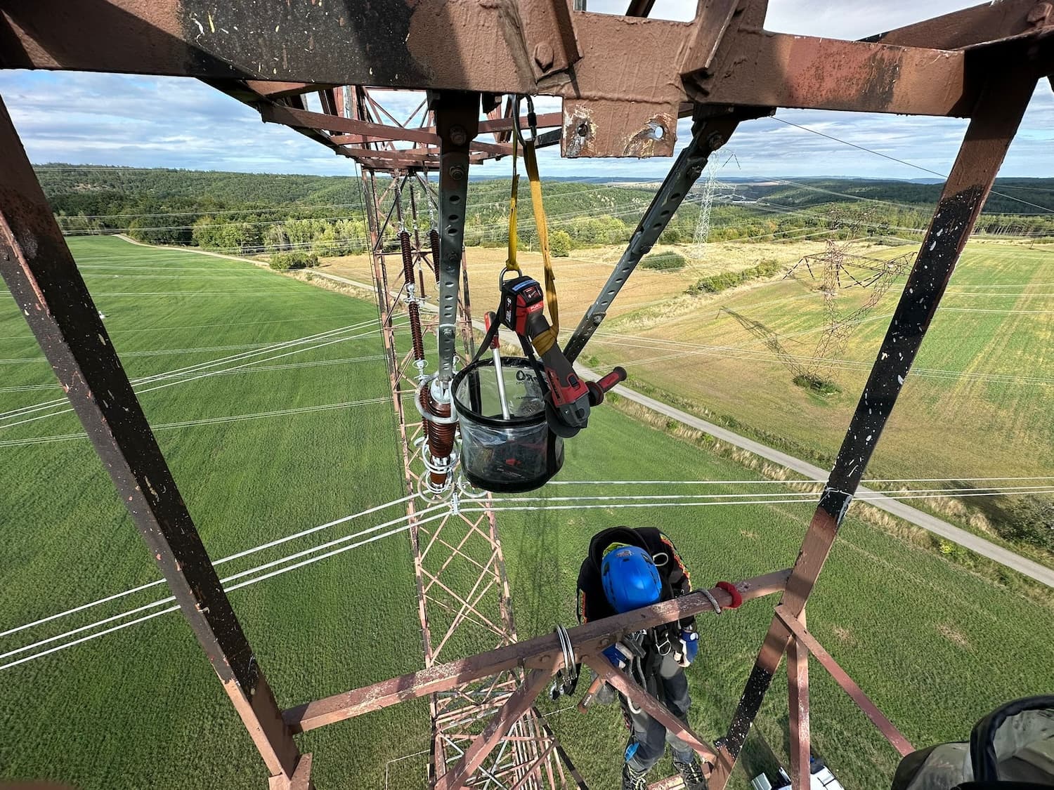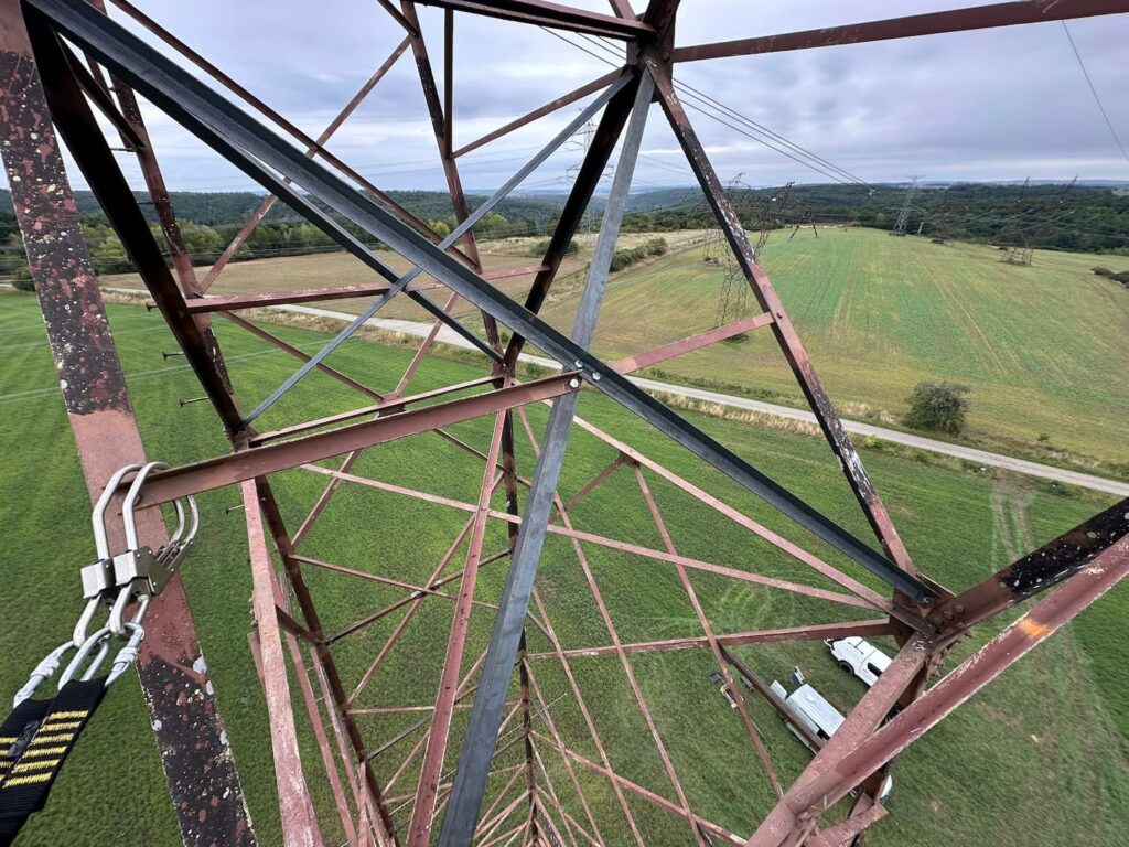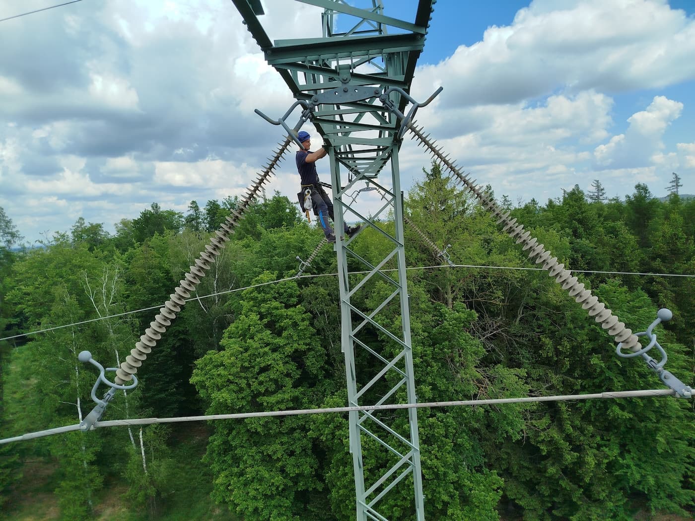Provádíme detailní diagnostiku nadzemních tras formou systematických pochůzek ze země i hloubkových lezeckých revizí. Při pochůzkách pečlivě mapujeme stav ochranného pásma (průklesty vegetace, cizí zásahy) a prověřujeme betonové patky, uzemnění i další klíčové prvky viditelné z úrovně terénu. Naši výškoví specialisté pak přímo na konstrukcích – a to i pod napětím – kontrolují případné deformace, stav spojů, kvalitu protikorozní ochrany, izolátorové svazky a fázové vodiče. Výstupem veškerých našich kontrol je precizní dokumentace s fotografiemi, která zákazníkovi slouží jako spolehlivý podklad pro efektivní plánování údržby.